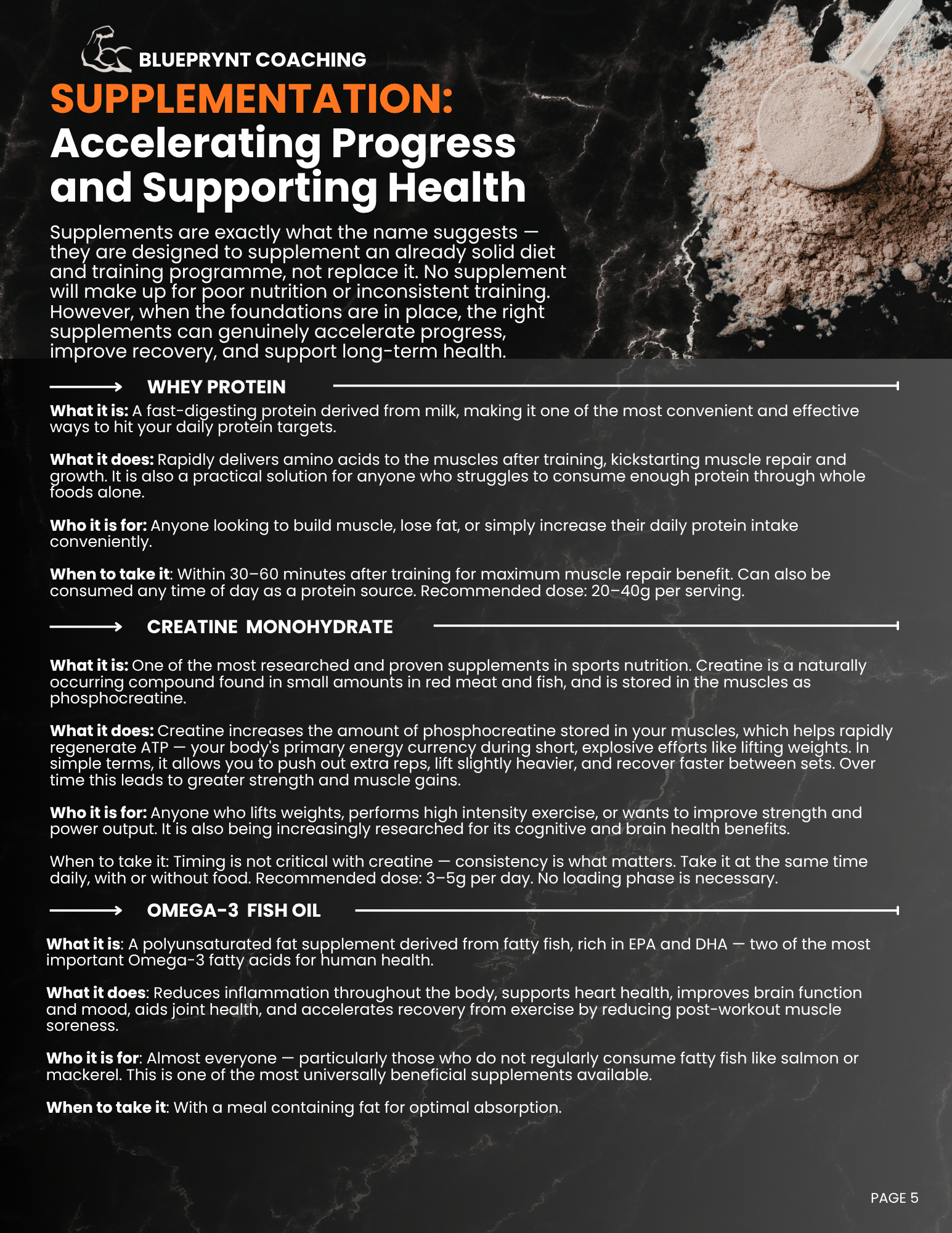Accelerate your progress and fuel your transformation by gaining the nutritional knowledge you need for success. No extreme diets or deprivation — just sustainable strategies that support your training and accelerate your progress. Understanding what to eat, when, and why is the missing piece most people overlook. With the right nutrition, you will recover faster, perform better, and see results that stick.